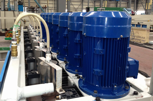 3.該機(jī)控制系統(tǒng)采用PLC終端控制,以液晶顯示觸摸屏終端為人機(jī)界面進(jìn)行參數(shù)設(shè)定,設(shè)備運(yùn)行過程中設(shè)有故障提示等等。該機(jī)適用于花崗石條板的連續(xù)磨削及拋光。板材輸送帶、磨盤橫移梁的工作速度均為變頻器調(diào)速;磨盤工作壓力、板材的磨削寬度在設(shè)定值范圍內(nèi)可調(diào)。本機(jī)可對板材形狀自動識別,每個(gè)磨盤(磨頭)可根據(jù)識別板材的形狀自動升降,同時(shí)對板材磨削進(jìn)行跟蹤記錄。整機(jī)均按標(biāo)準(zhǔn)化生產(chǎn),性能穩(wěn)定、故障率低等優(yōu)點(diǎn)。